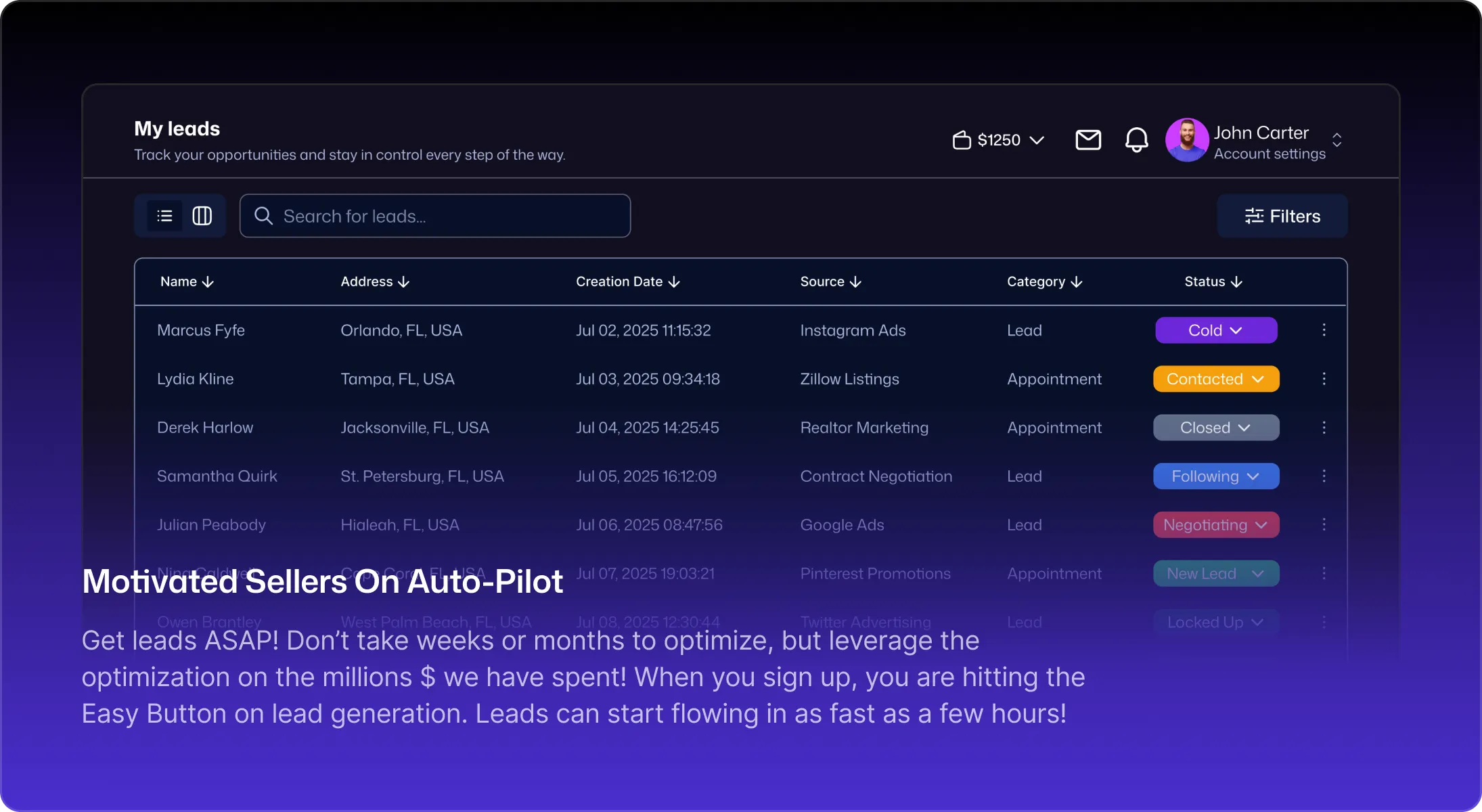 month with ourMotivated Seller Online PAY PER LEADprogram?